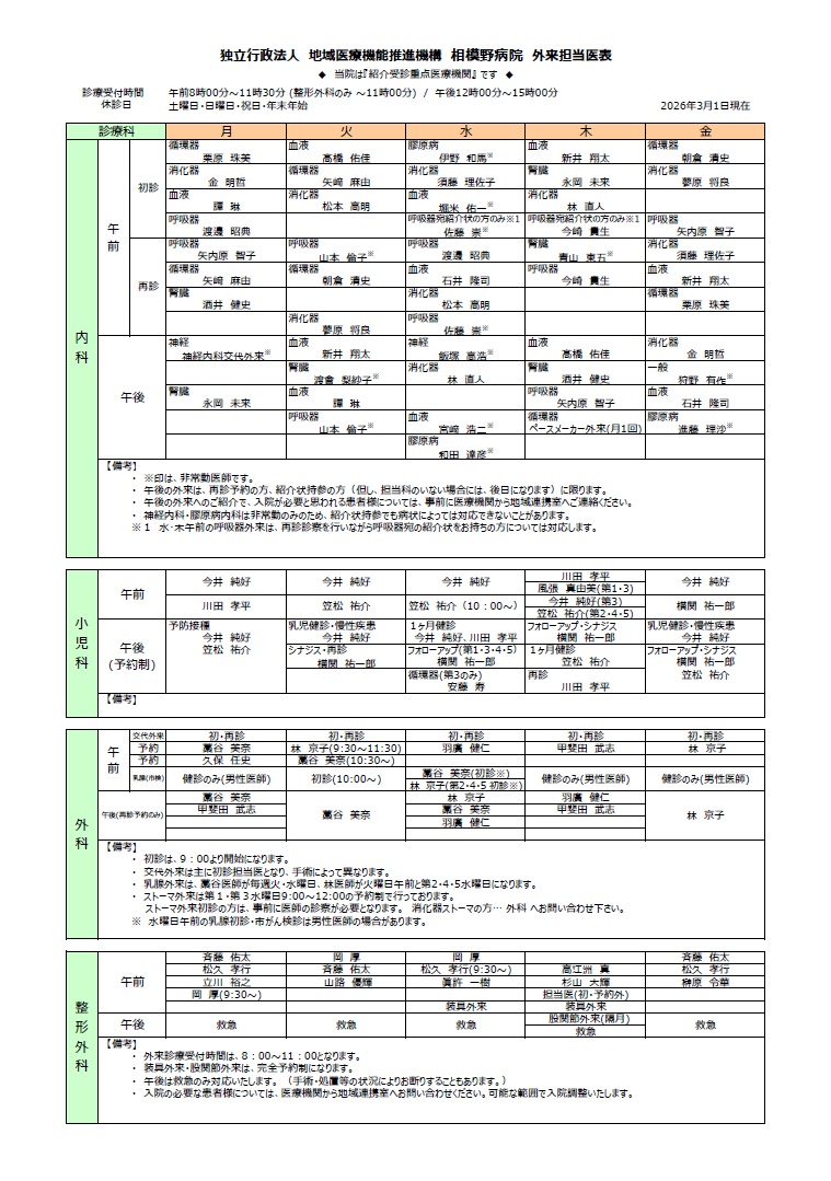 外来診療担当医表