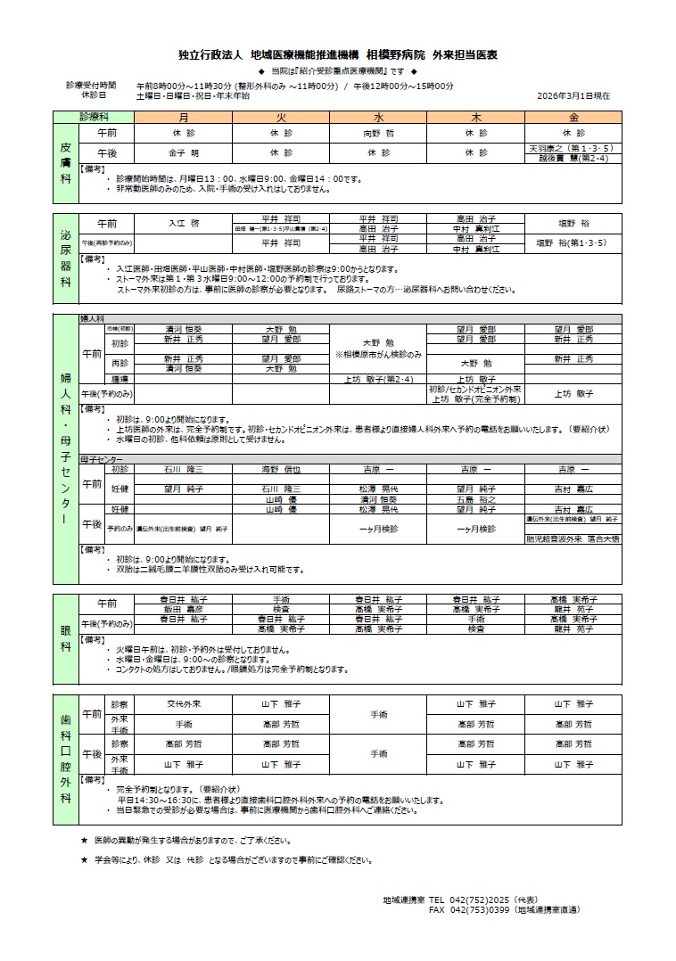 外来診療担当表